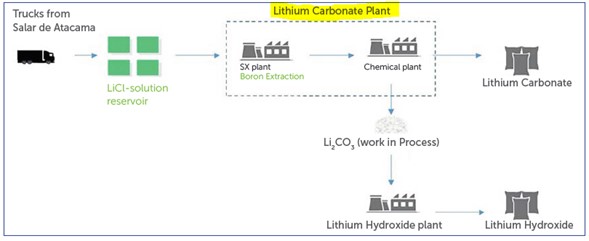 Ilustración 9. Identificación del proceso de producción de carbonato de litio. Fuente: Sustainability of lithium production in Chile, SQM 2020.